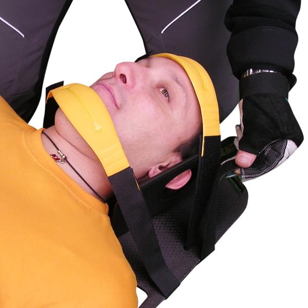 固定受伤头部的装置。 配有带侧扶手的座垫、两个用于固定前额和下巴的塑料衬垫吊索以及两个用于快速紧固的尼龙粘扣带。 使用活动 直升机救援 山地救援