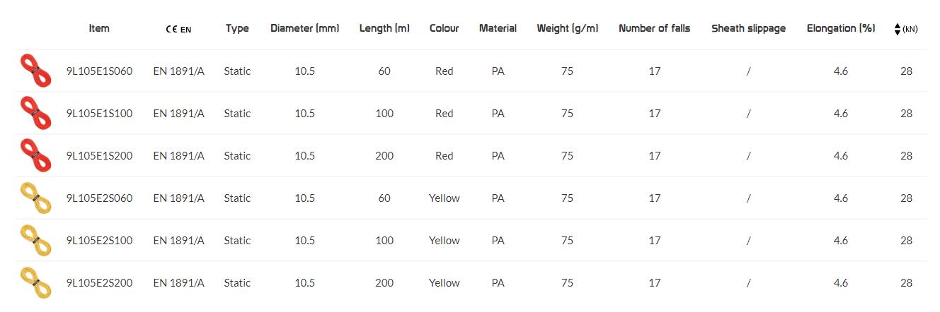 Static rope with diameter 10.5 mm, certified CE EN 1891. Available in different lenghts: 60, 100, 200m.